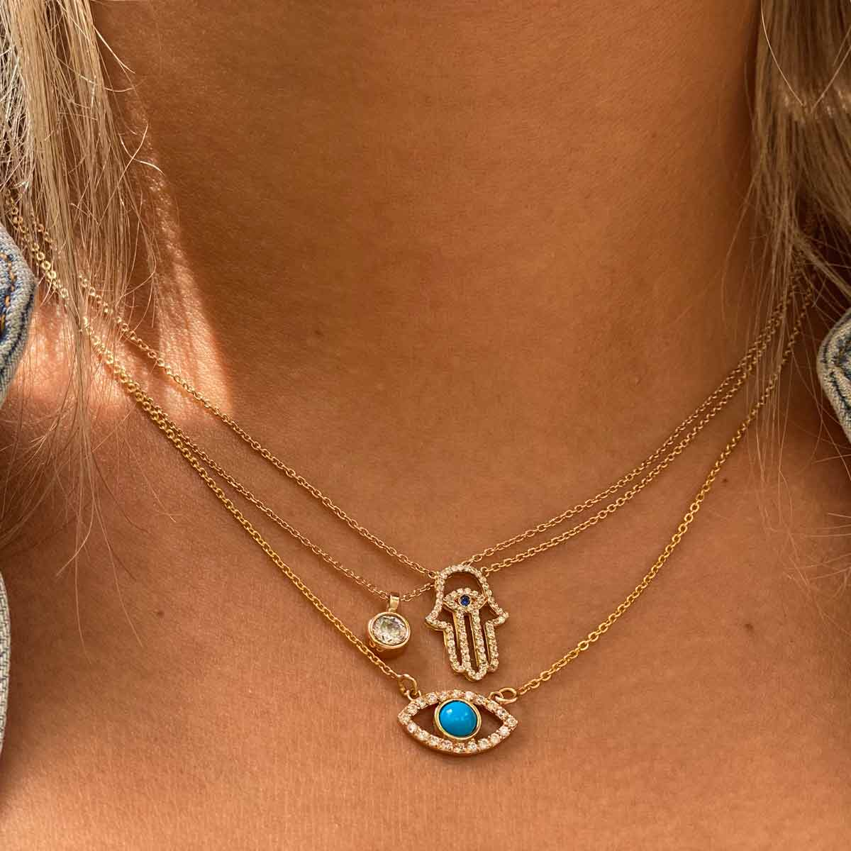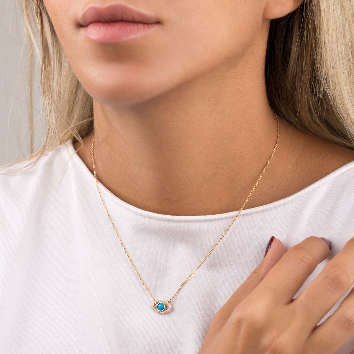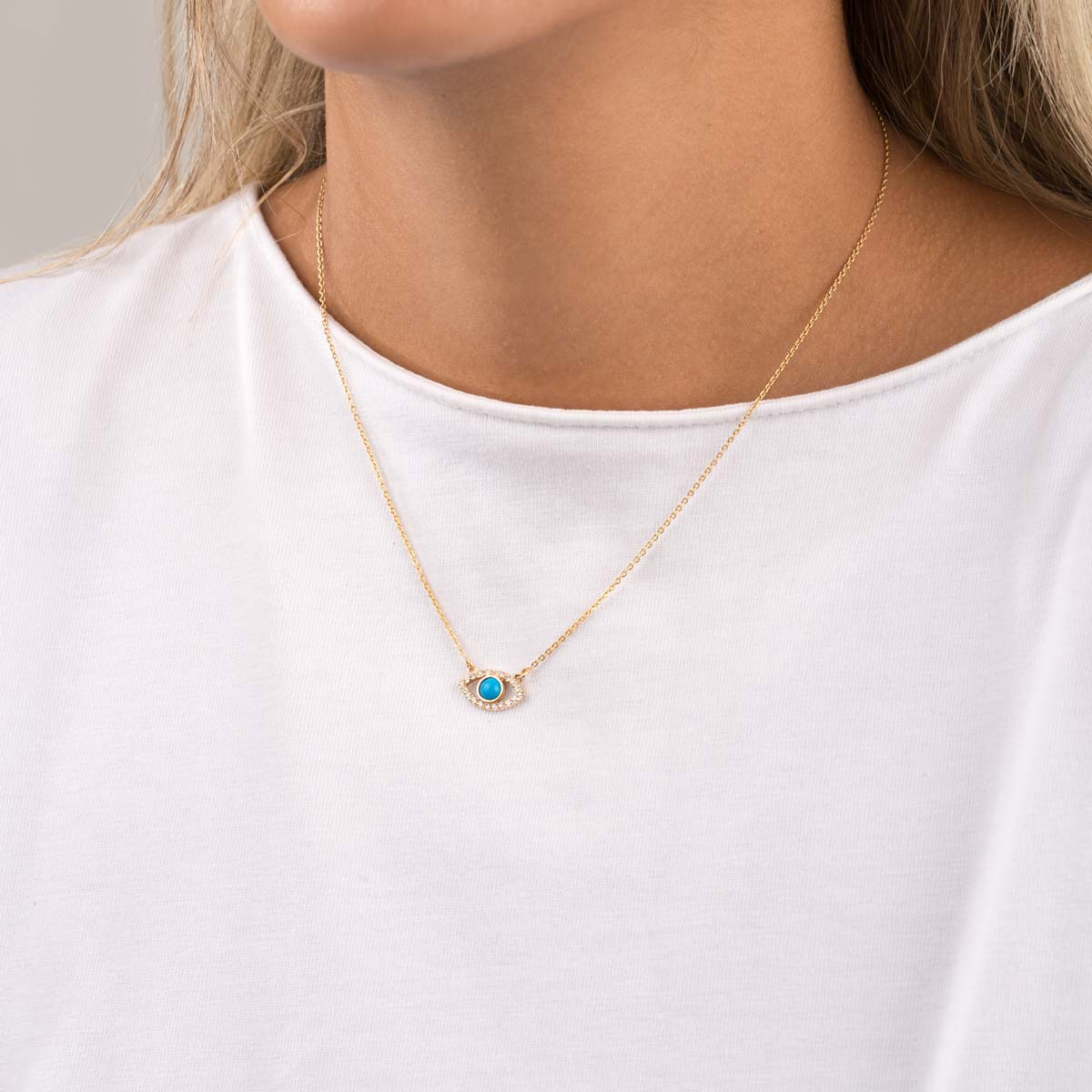 گردنبند طلا چشم فیروزه یک جواهر زیبا و شیک است که طراحی ظریف و منحصر به فردی دارد. این گردنبند معمولاً با آویز چشم طراحی میشود که در وسط آن یک قطعه فیروزه آبرنگ قرار دارد. فیروزه با رنگهای آبی و سبز خود زیبایی خاصی به گردنبند میبخشد و به دلیل نمادهایی که برای محافظت و انرژی مثبت دارد، از محبوبیت زیادی برخوردار است. طراحی ظریف آن باعث میشود که این گردنبند مناسب استفاده روزمره یا به عنوان یک جواهر خاص برای مناسبتها باشد.